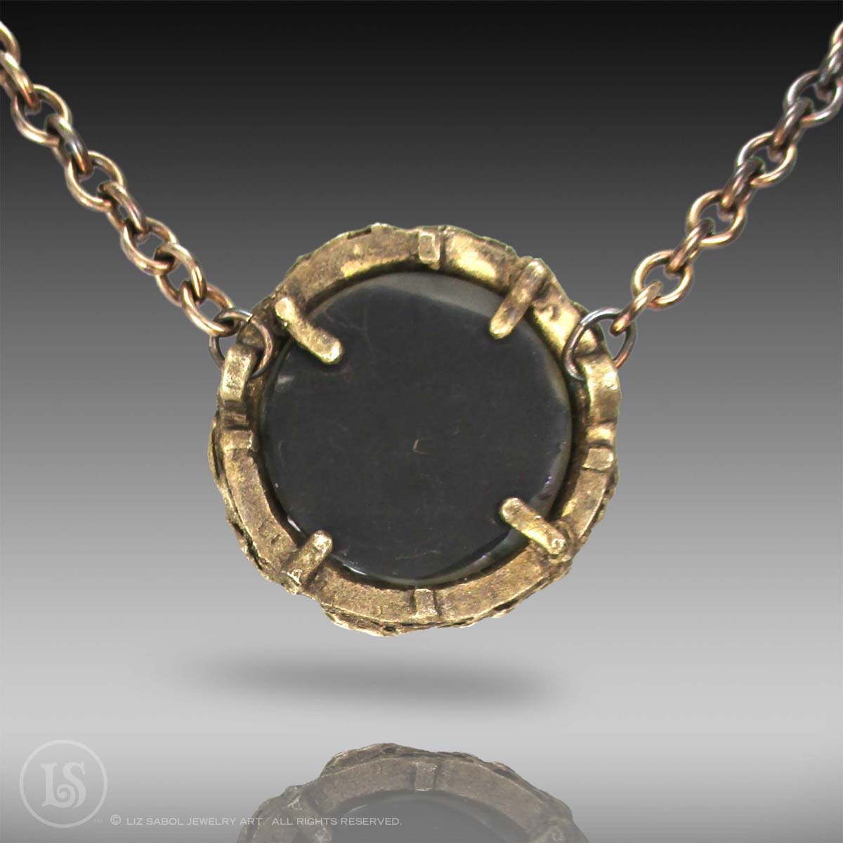 Bronze chain is integrated - overall length is 16", with toggle clasp.